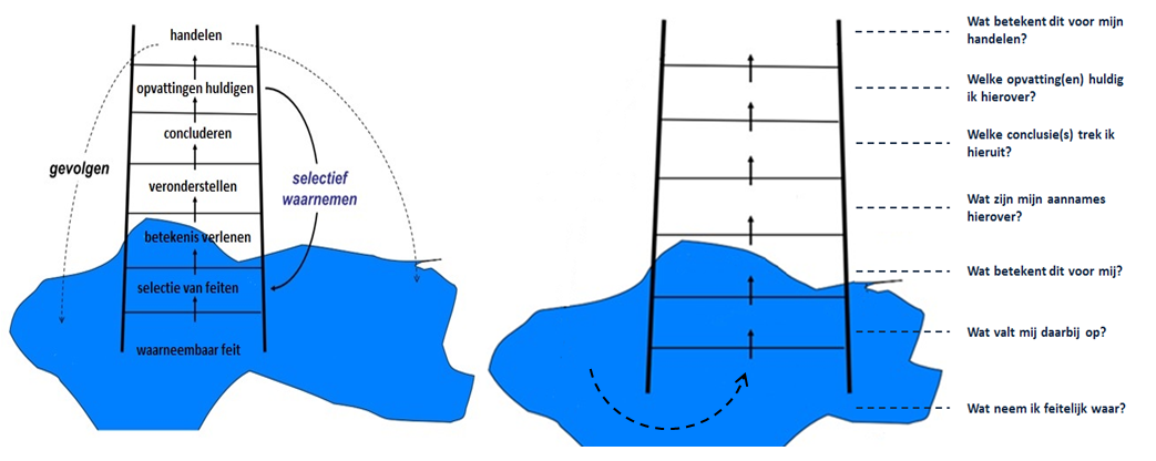Ook Kloosterboer (2013) onderschrijft het belang van gezamenlijke betekenisgeving. Het is, in de vorm van waarnemen en (her)waarderen, dan ook een belangrijk aspect van de door hem beschreven cyclus ‘waarnemen, waarderen, willen en waarmaken’. Hij geeft daarbij aan dat het gebruik van zogenaamde ‘interpretatieladders’ kan helpen om meer inzicht te krijgen in elkaars mentale modellen.